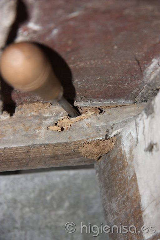 Las imágenes de ataques o daños de termitas que aquí se muestran son sencillas de identificar ya que aparecen cuando los daños en la madera están muy avanzados.